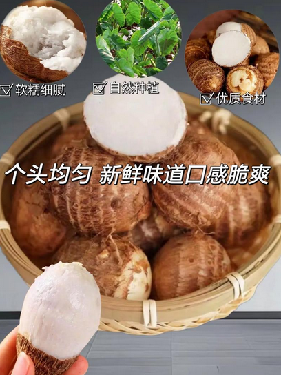 1. 云南产地直供·自然原生态:源自云南高原生态种植区,气候温润、土壤肥沃,全程自然生长,不催熟、不打蜡,保留毛芋儿原生风味与营养,每一颗都带着高原的纯净气息。